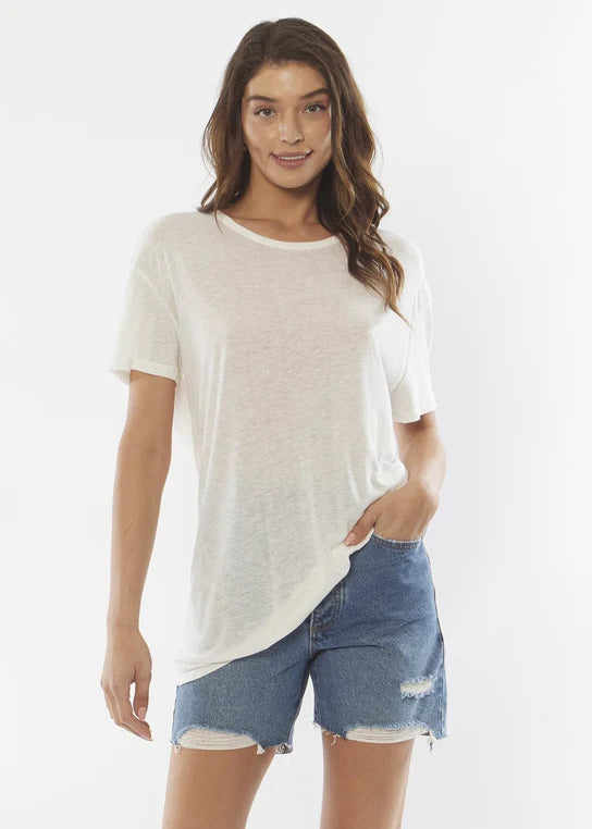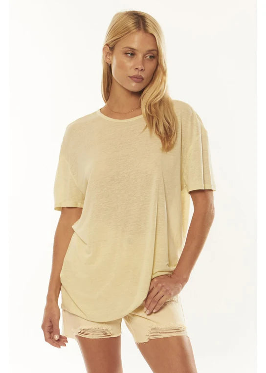 Revive your wardrobe with the Awaken Knit Tee! This oversized crew neck tee offers comfort and style with dropped armholes and self-binding at the neckline. Made with 70% viscose and 30% linen, you'll never want to take it off. Plus, its snuggly feel will leave you feeling cozy and chic. Wow!